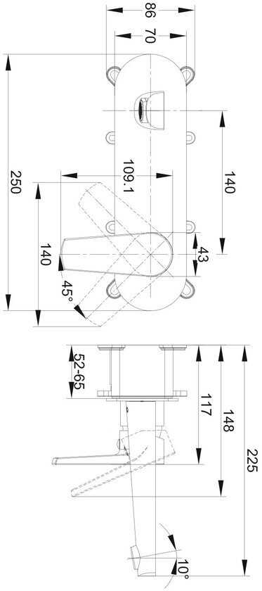 - длина излива: 181 мм