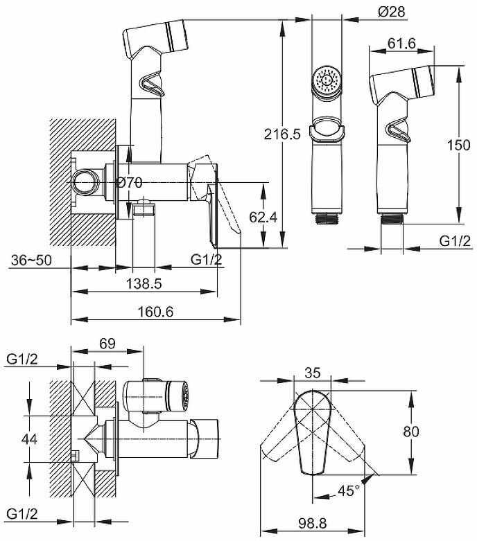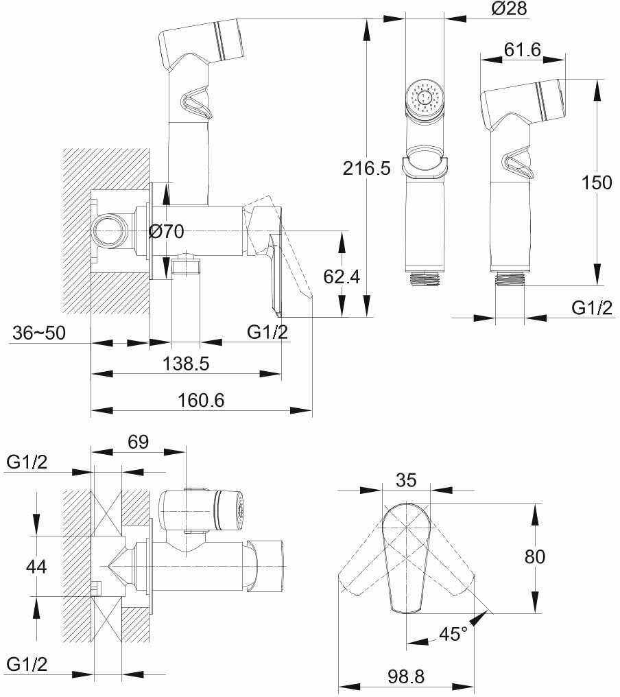 Комплектация : | гигиенический душ, лейка, смеситель, шланг |