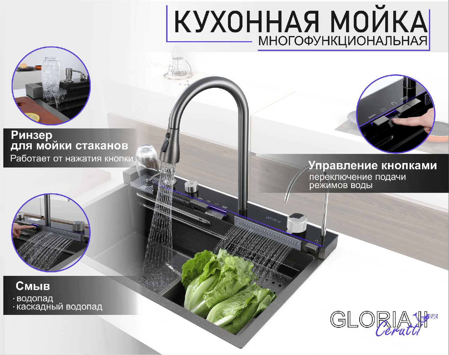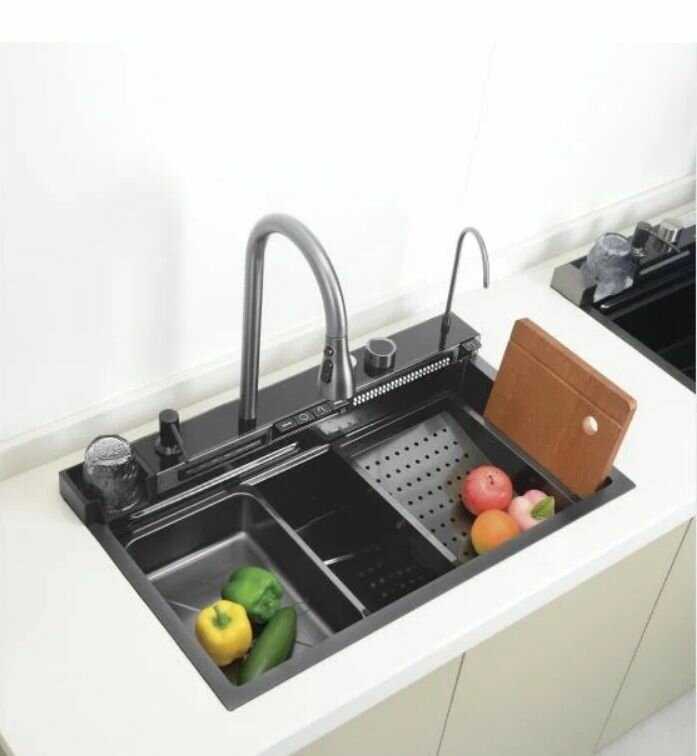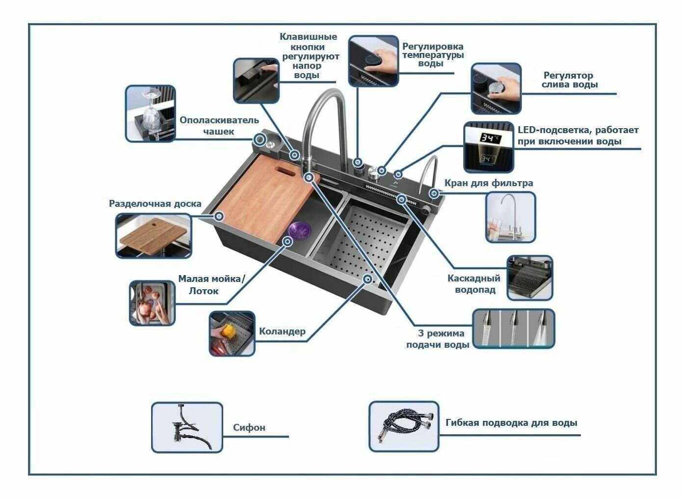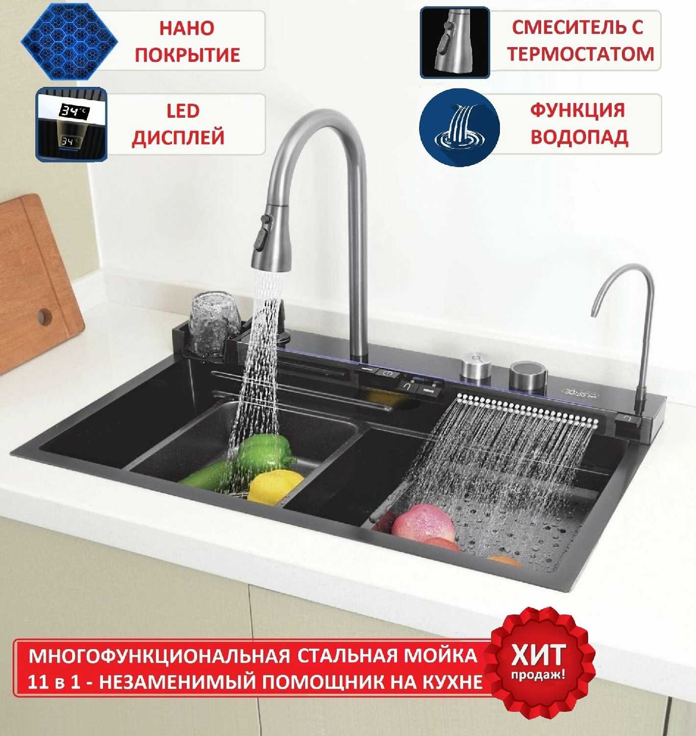 - + Классная мойка. Функциональная нано раковина с кучей прибамбасов.