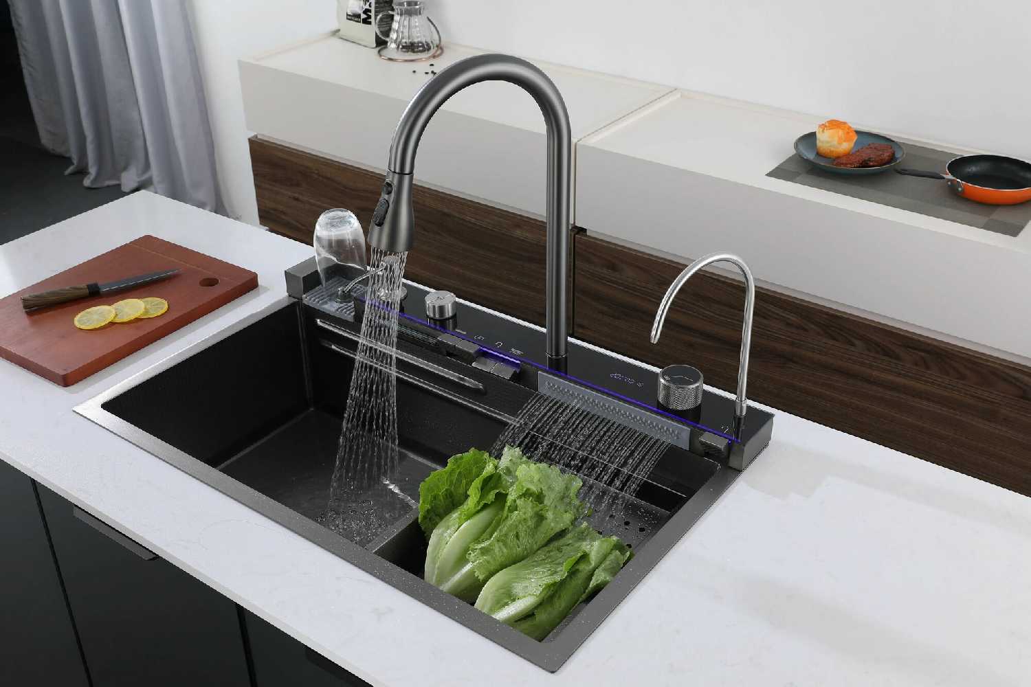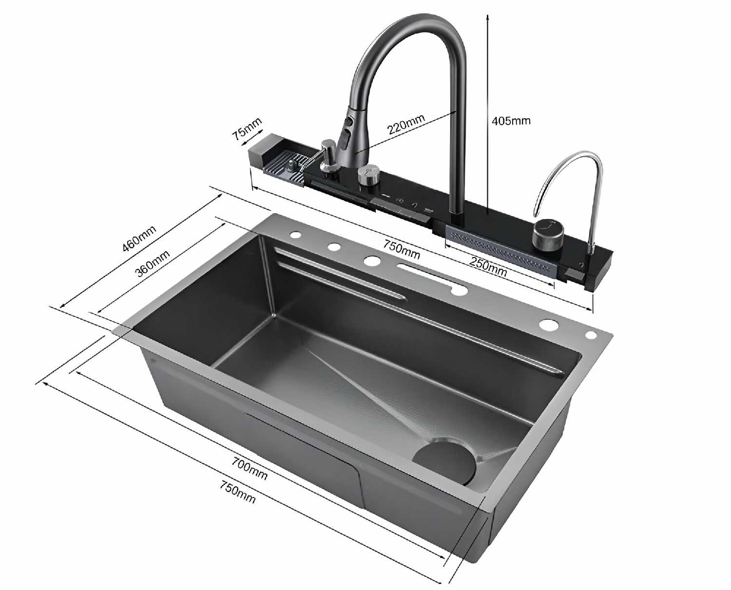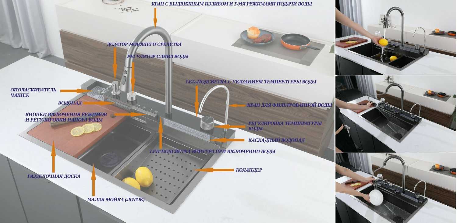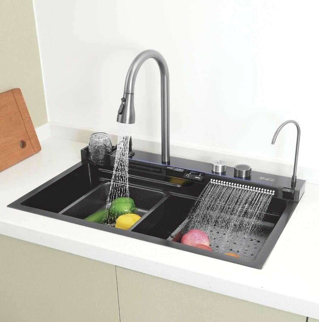 - + Классная мойка. Функциональная нано раковина с кучей прибамбасов.