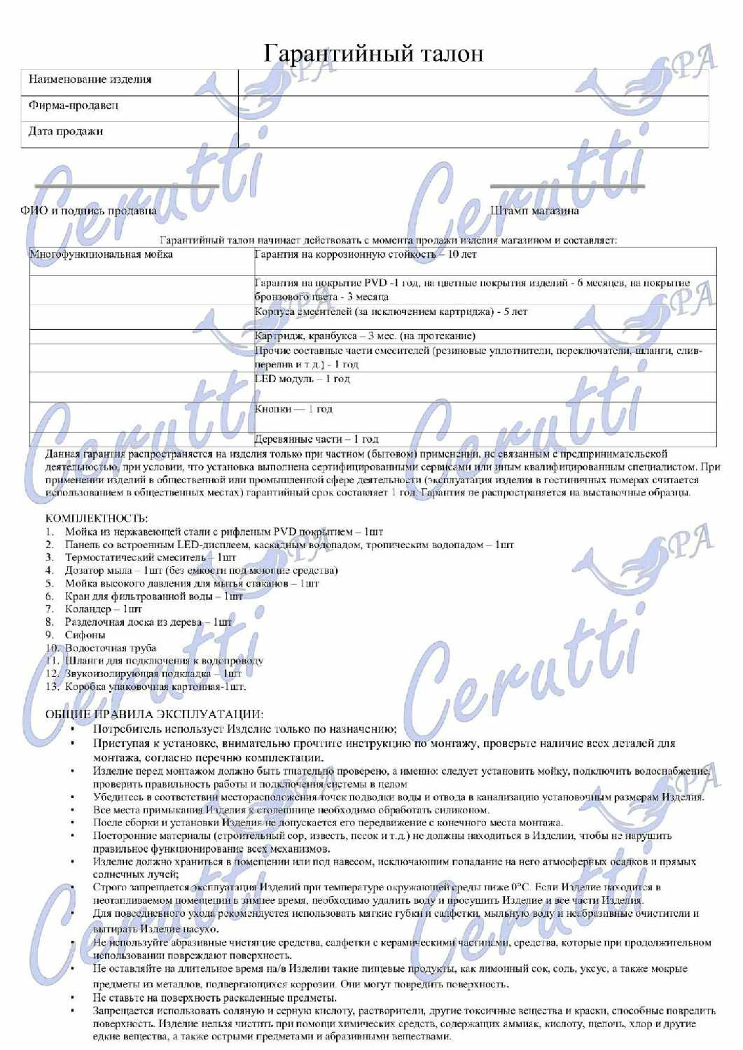 - - Не коректно работает подсветка, не показывает температуру, громоздкая, чтобы обслужить мойку (если будет протечка одной из гибких подводок) придётся выдёргивать её из столешницы, так как все элементы находятся с сади мойки, доступ ограничен или вообще не возможен. Был наклеен малярный скотч на отверстиях мойки, покраска производилась поверх, при отклеивание скотча краска отклеивается вместе с ним. Не прокрашенны боковые торцы мойки, которые опираются на столешницу, это видно. Нет нормальной инструкции на русском языке.