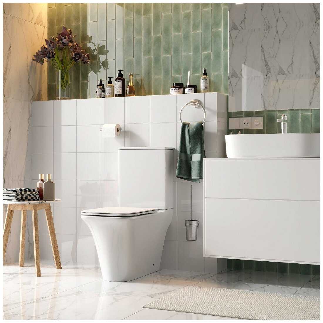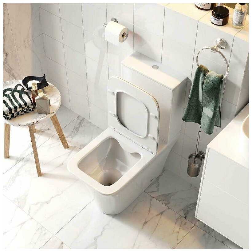 - + Отличная, удобная форма. Установка впритык к стене. За счет зауженного сиденья, унитаз кажется очень компактным, но на самом деле...