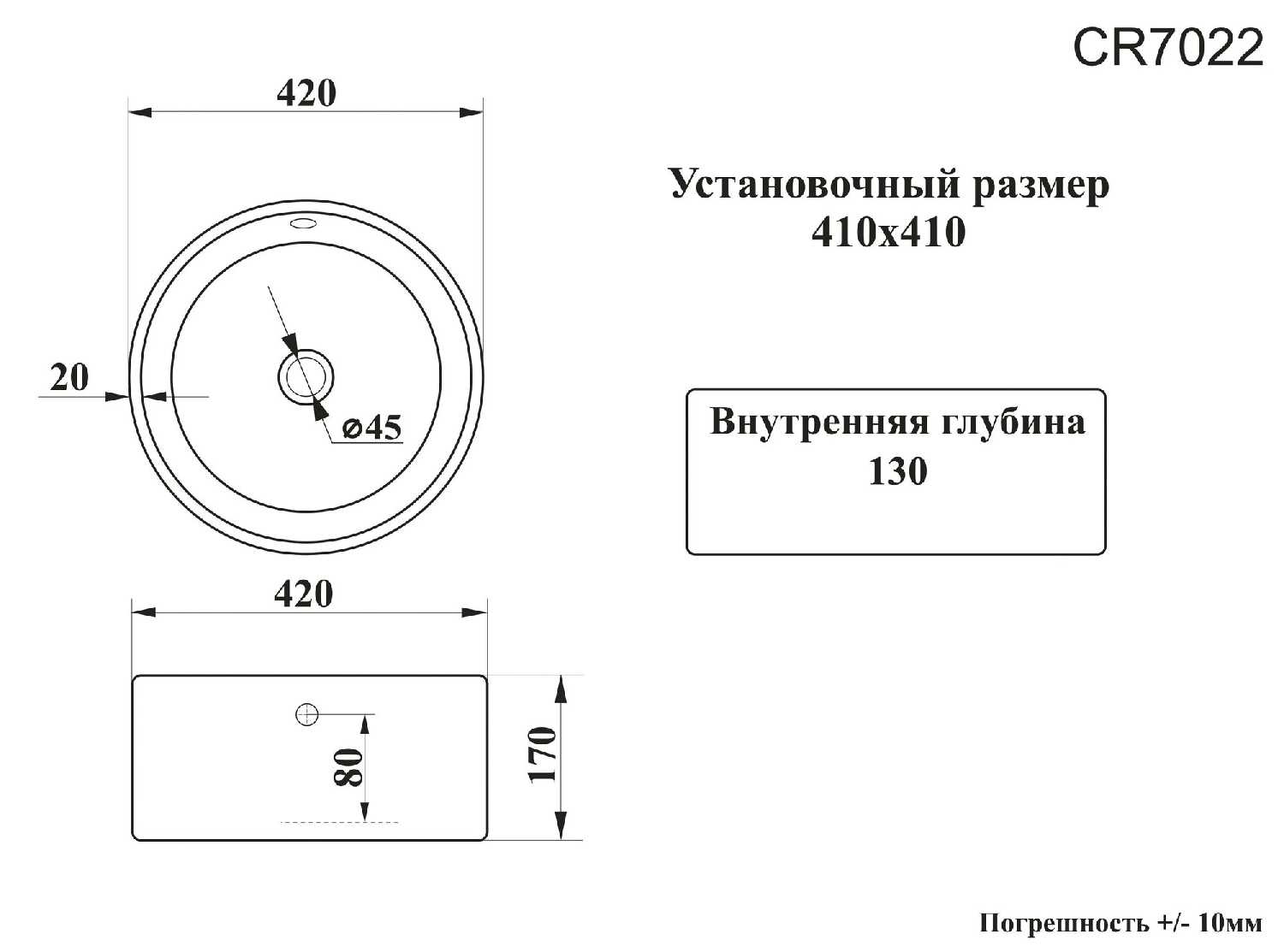 Диаметр сливного отверстия : | 45 мм |