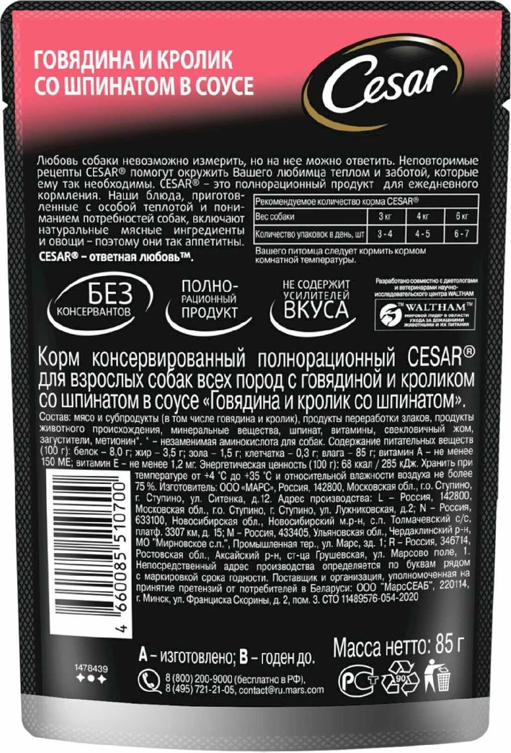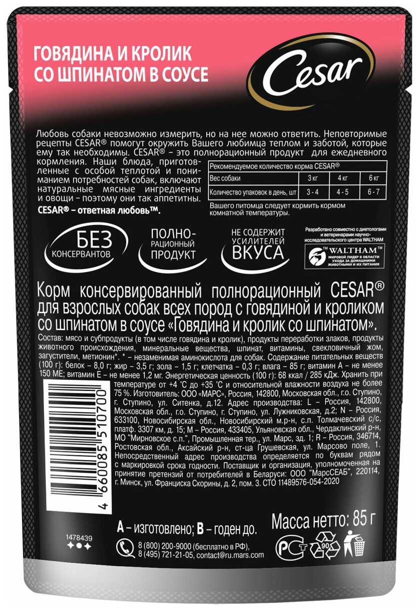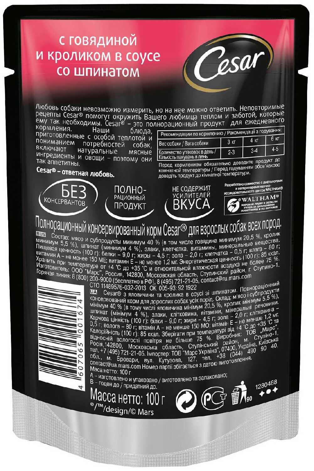 Обзор Cesar кролик, говядина, со шпинатом*: