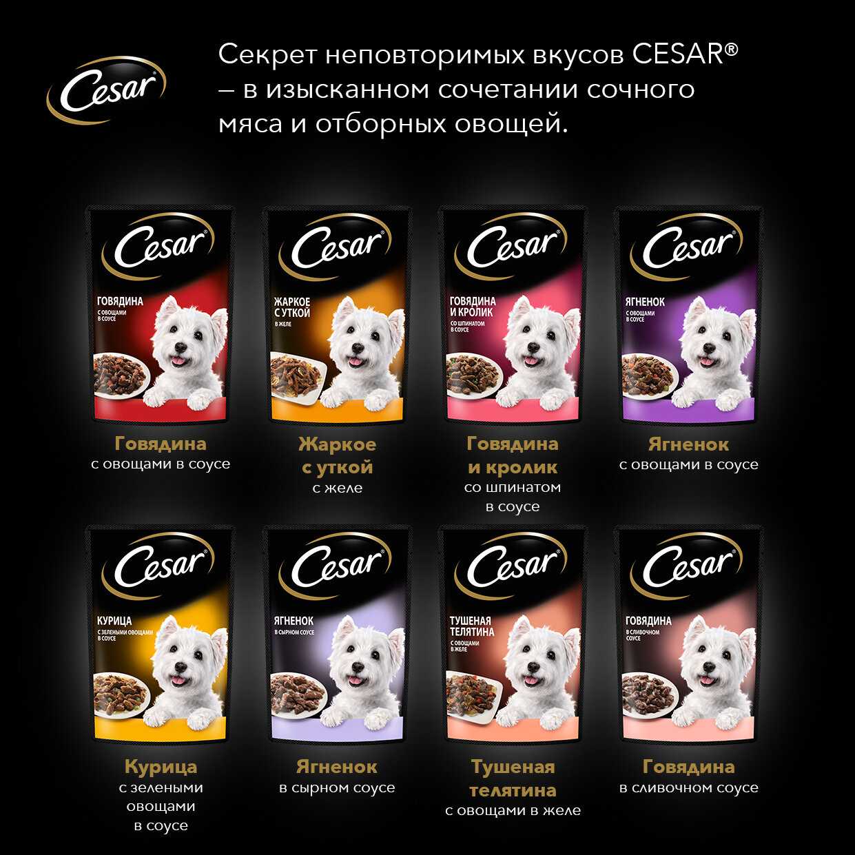 Cesar идеально подходит мелким породам как полноценный рацион. Один 100-граммовый пакетик хватает на одно кормление. Той-терьеры 9 лет и йорки едят его с удовольствием без проблем. Переход с сухого корма на пакетики помог нормализовать вес. Ветеринары одобряют такой корм для мелких собак. -
