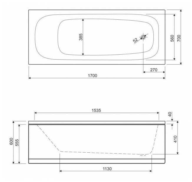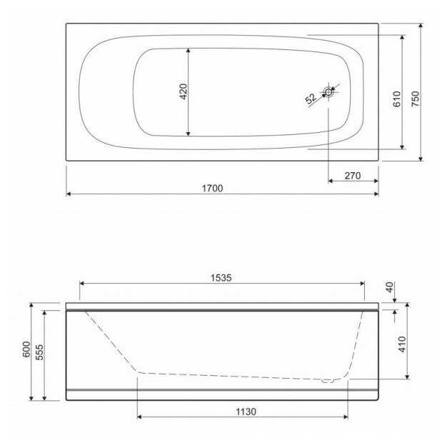Характеристи CEZARES ECO Акриловая 1700x750x410 ECO-170-75-41