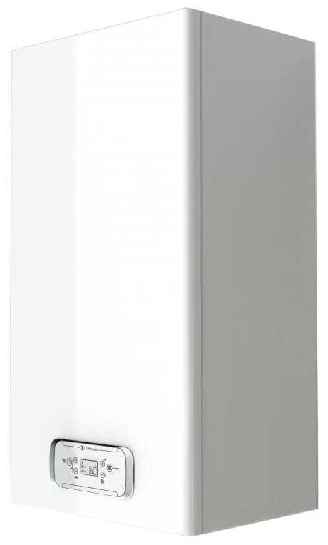 - + италия, группа фабрик Ariston, мощный, медный теплооменник, возможность дополнительно подключить удаленное управление или комнатный термостат