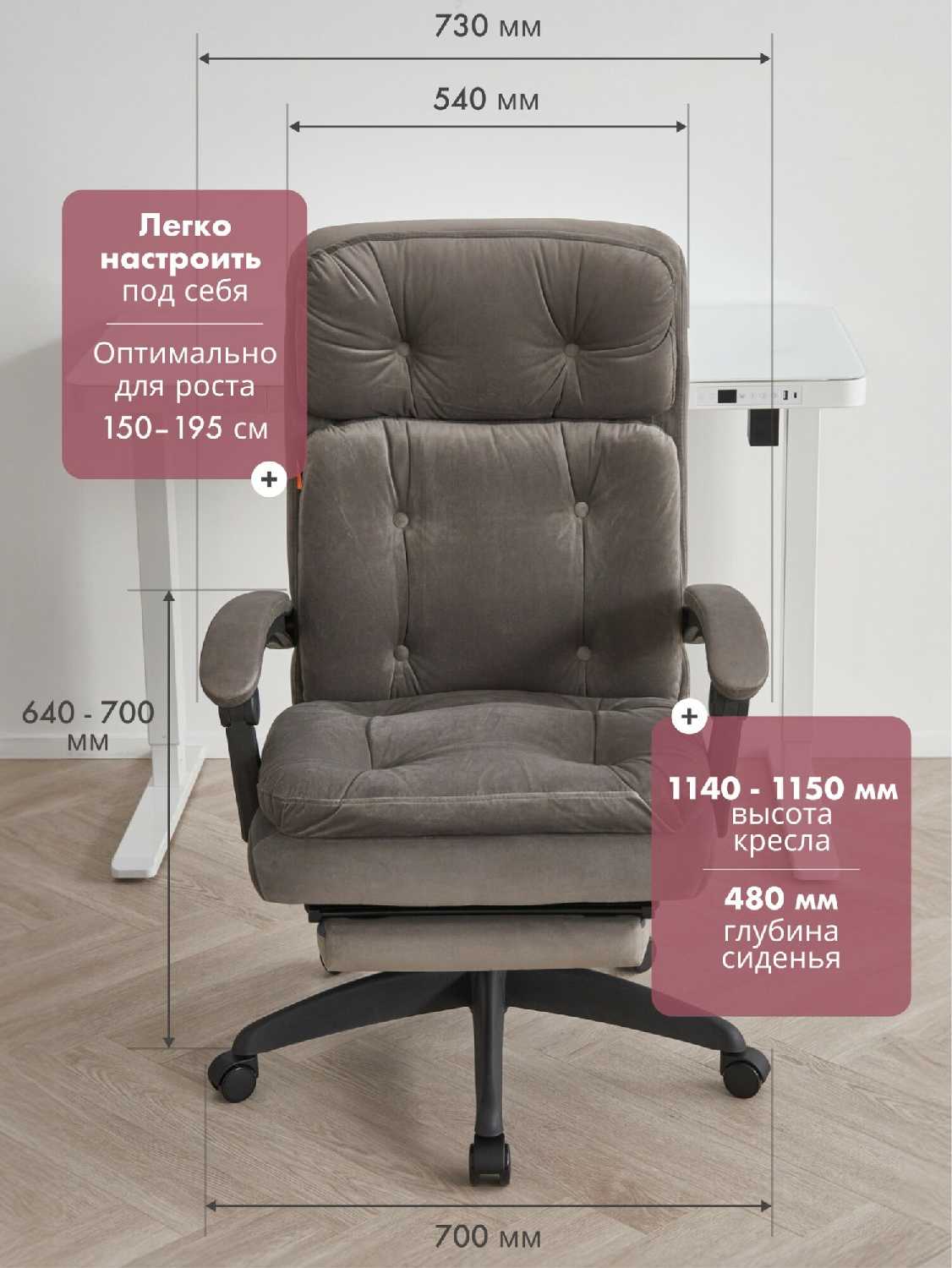 Кресло занижено по высотее относительно офисных кресел.