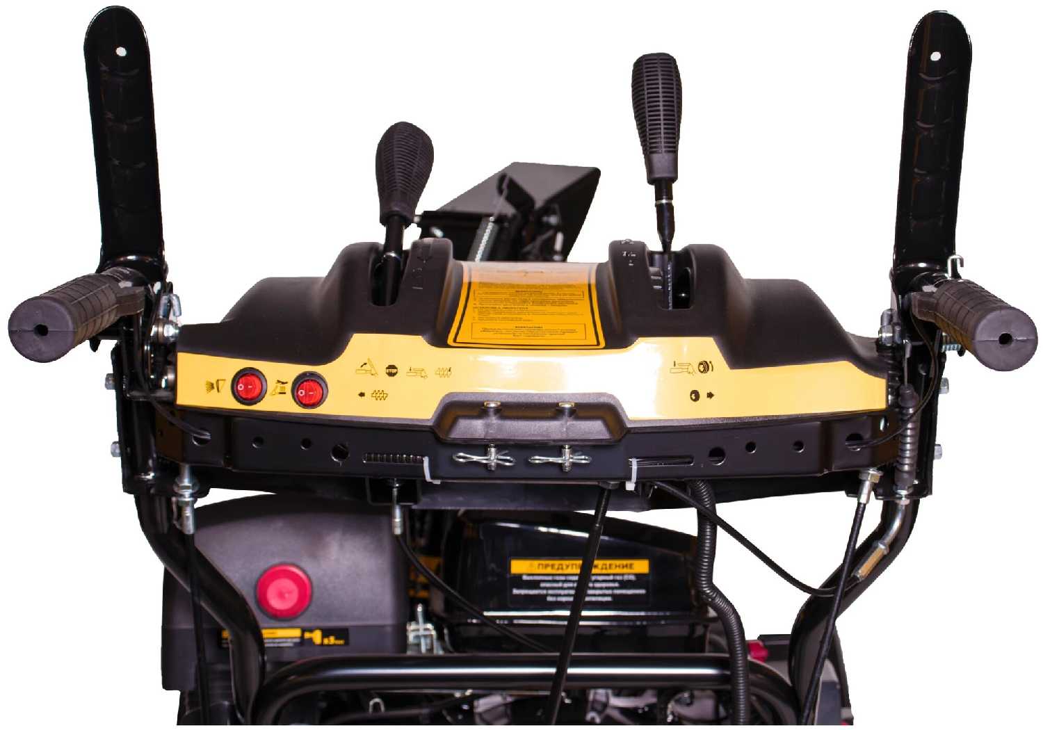 | Особенности : | возможность управления одной рукой, наличие фары, реверс, регулировка рукояти по высоте, рукоятки с подогревом |