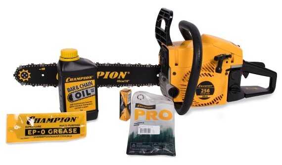 | Дополнительная информация : | Инерционный тормоз цепи и уловитель цепи - безопасность оператора, Блокировка курка газа - защита от повторного пуска, Воздушное охлаждение двигателя, Облегченный доступ к воздушному фильтру, Регулируемая автоматическая система подачи масла на цепь и шину, Эргономичная рукоятка Champion 256-18", Топливо: смесь бензина АИ-92 и масла для двухтактных двигателей в соотношении 50:1, ширина паза 15 мм 72 звена |