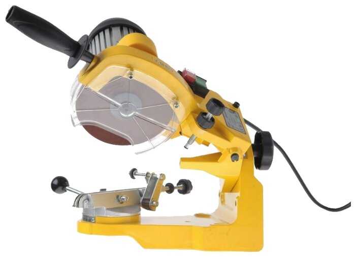 Довольно неплохой станок, но последние модели пошли с поворотным механизмом зажимного устройства но приспособиться можно хотя данное устройство позволяет настроить более резкую или плавную кромку хотя как правило эта настройка больше мешает, диски к станку в доступности под разый шаг цепей, принастройке всеже лучше выровнять середину диска по оусканию на цепь- подкладывается шайбочка под крепеж поворота, а так станок рабочий и нужно давать время для охлаждения всеж станок не для круглосуточного использования