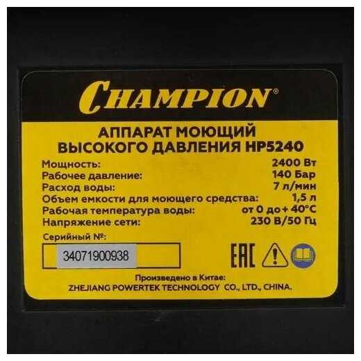 Отзывы о Мойка высокого давления CHAMPION HP5240