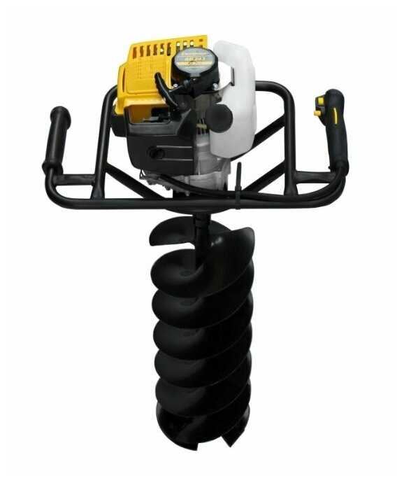 - Эффективно бурит лёд (для зимней рыбалки), мерзлый грунт и сырую землю за счёт высокой тяги на низких оборотах.