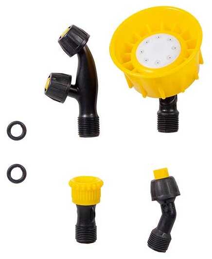 Стандартная комплектация включает 3-4 форсунки: плоский веер, конусный распыл и струйную насадку. Пользователи хвалят их универсальность для разных задач (от обработки рассады до промывки поверхностей). Однако в некоторых партиях встречается недокомплектация — отсутствие отдельных насадок. Фильтр-сетка на заливной горловине предотвращает засоры. -