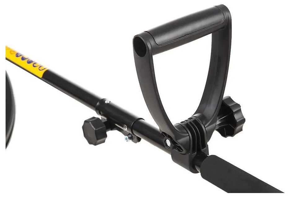 - Регулируемая рукоятка подстраивается под рост, позволяя косить без наклонов, что удобно для участков до 6 соток.