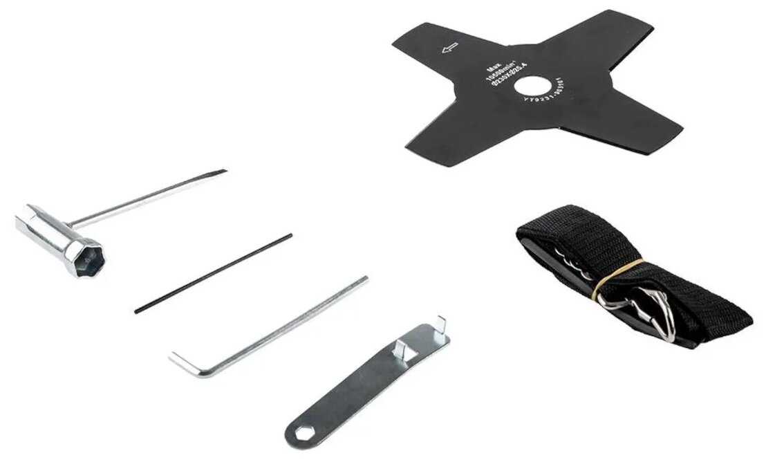 | Подробная комплектация : | Катушка с леской, 4-лопастной нож, Плечевой ремень. |