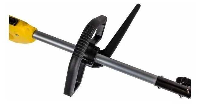 - + Удобный. По росту подошел. Вес хороший. 4.36 кг в сборе. Не сильно шумит. Две части -штанги, практически собраны. Осталось прикрутить ручку, защитный кожух, две штанги соединить и установить нож, либо головку с леской.