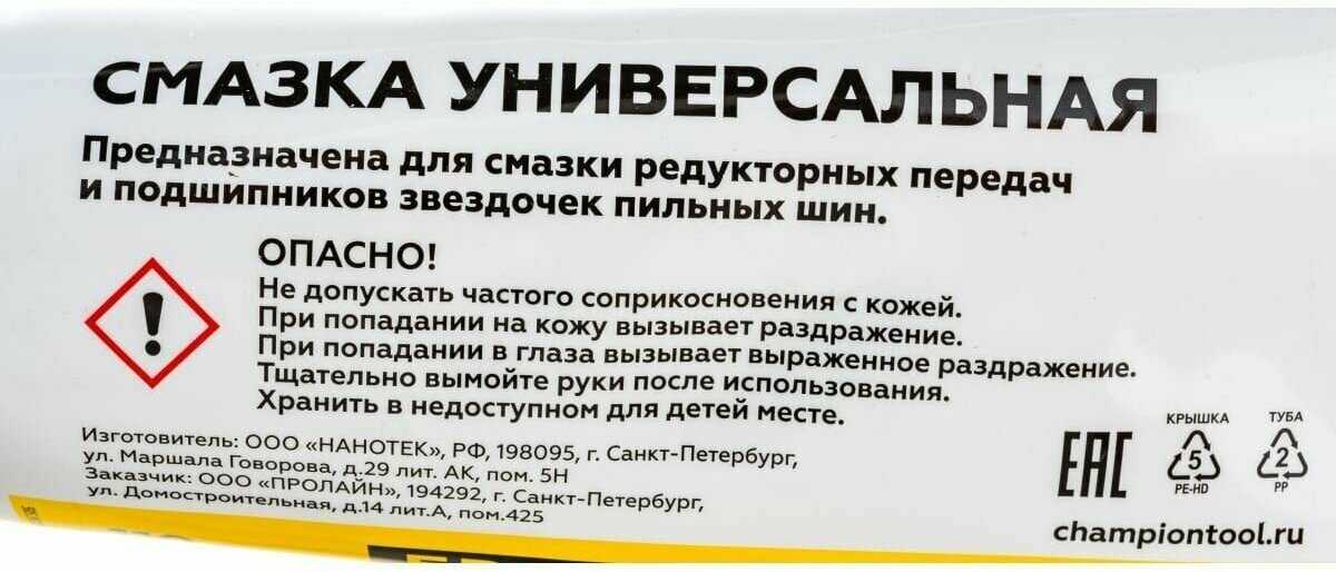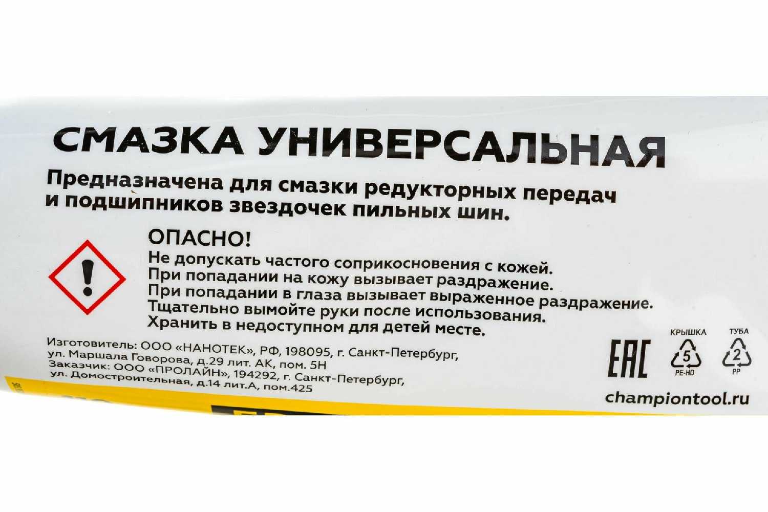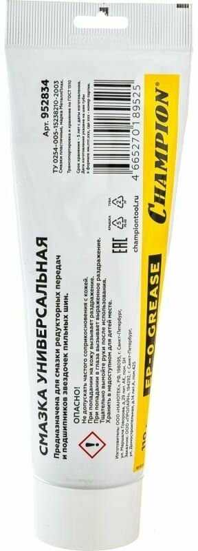 Дополнительная информация : | Смазка универсальная CHAMPION EP-0 110г |