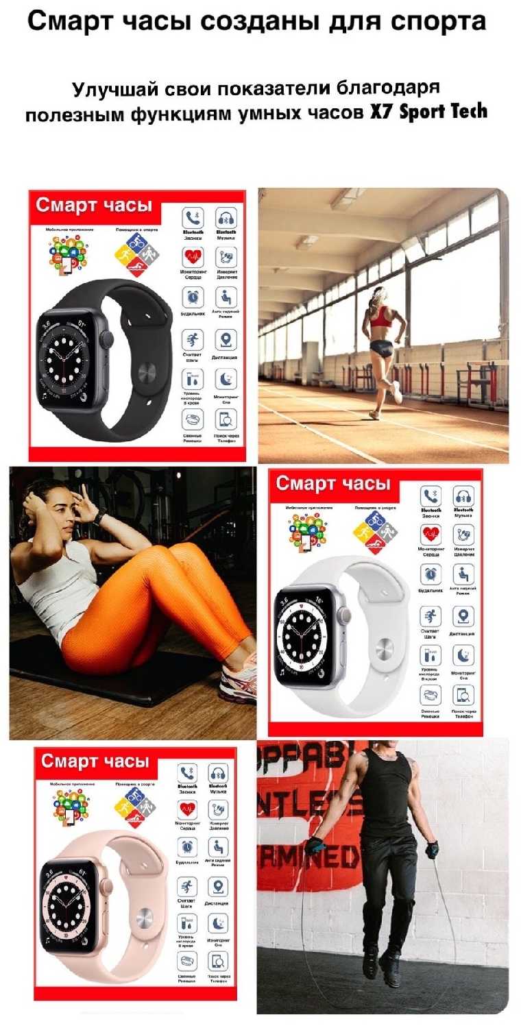 Jetson Умные наручные смарт часы женские и мужские с измерениям давления . Smart watch для фитнеса X7.