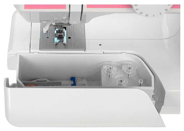 - - Плохая подсветка, машинка прыгает во время работы, нет обметочной лапки в комплекте, отверткой из комплекта нельзя отрегулировать натяжение нитки в челноке, чехол на машинку сделан из какого то плохо пахнущего синтетического материала, но самое главное - машинка путает низ и не шьет нижний ряд строчек