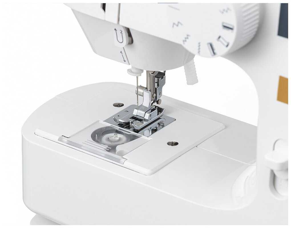 Вес всего 2.5 кг и малые габариты позволяют легко переносить её или брать в поездки. При этом корпус устойчив — не скользит по столу во время шитья благодаря продуманным ножкам-противоскользителям. -