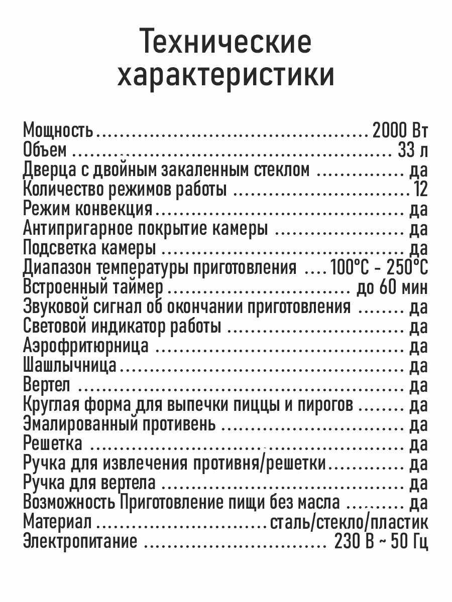 Характеристи CHEF PRO Духовка электрическая настольная (33л)