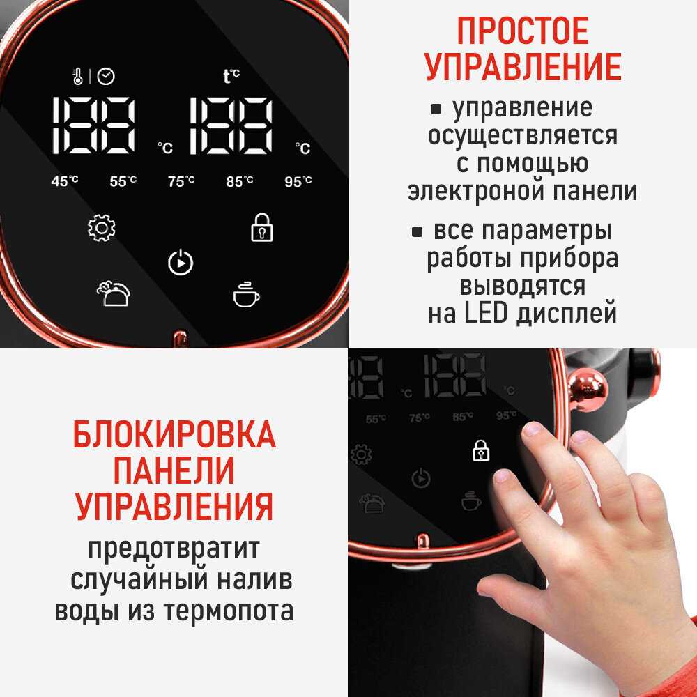 | Особенности : | двойные стенки, дисплей, сенсорное управление |