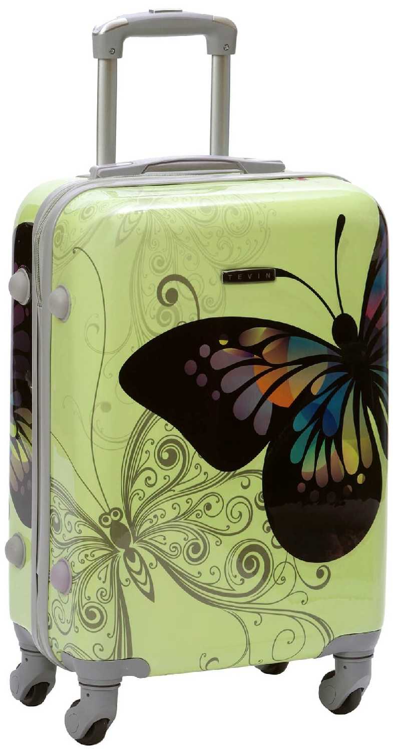 TEVIN Чемодан на колесах из поликарбоната Тевин, Бабочка 0057, размер M+, 78 л
