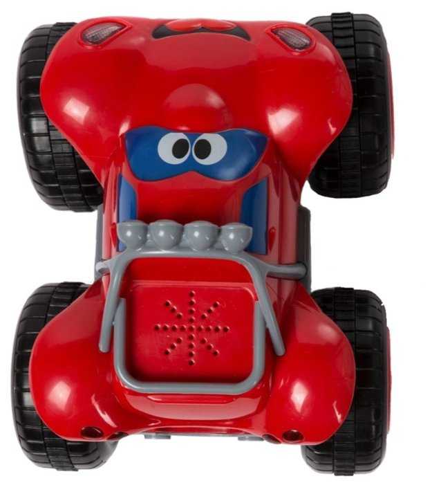 - + Увесистая. Не создается ощущение дешманской пластмассы. Автовыключение через какое-то непродолжительное время неиспользования = экономит заряд. Прикольно "рычит" когда едет. Издает сигнал при заднем ходе. Есть гудок, тоже прикольно. Разгоняется уверенно и едет весьма бодро. При езде вперед горят фары.