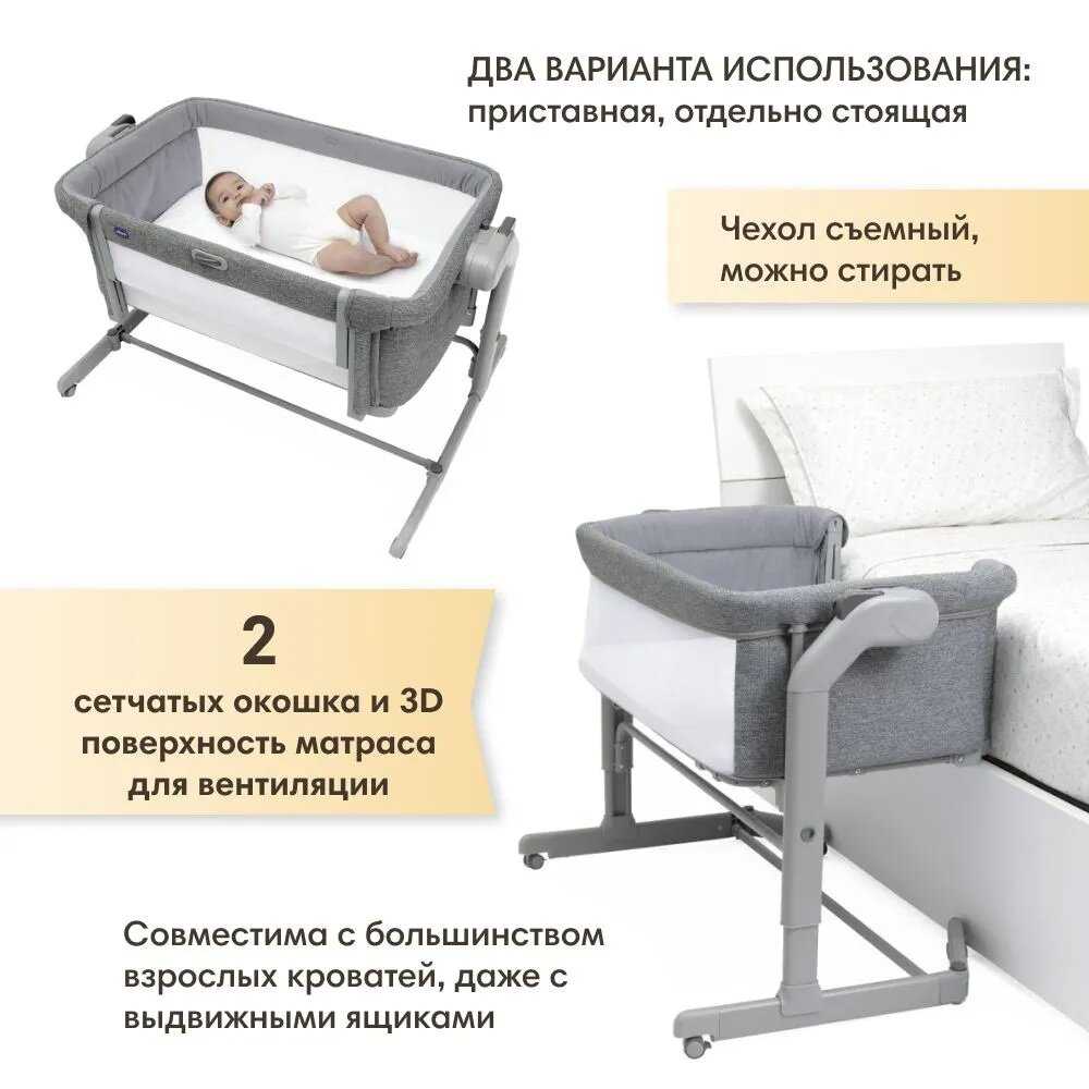 - + Отличная приставная кроватка, удобно перемещать по квартире. Небольшая, подойдет пока малыш помещается и не встает