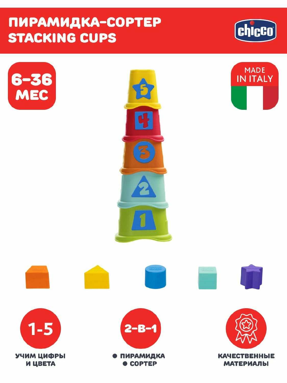 Лучшие цены сегодня на Chicco Пирамидка Smart2Play Stacking Cups (2 в 1)