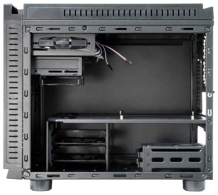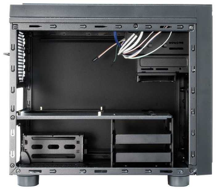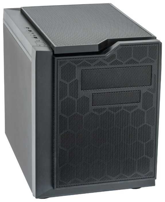 - + - Относительно компактный почти куб для плат mATX формата с возможностью размещения 4 x 3.5" дисков (1 -- в 5.25" слоте через переходник) + 3 x 2.5" дисков.