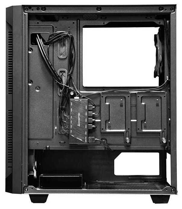 Целевая аудитория: Корпус подойдет пользователям с совместимыми ARGB-материнскими платами, готовыми к ручной настройке BIOS для управления вентиляторами. Вместительность шасси оптимальна для ATX-систем с воздушным охлаждением, но не для массивных СВО или двух видеокарт — нижние слоты PCI-E перекрыты корзиной HDD. Качество материалов приемлемо для ценника до 6000 руб., но уступает Chieftec моделям 2008-2014 гг.