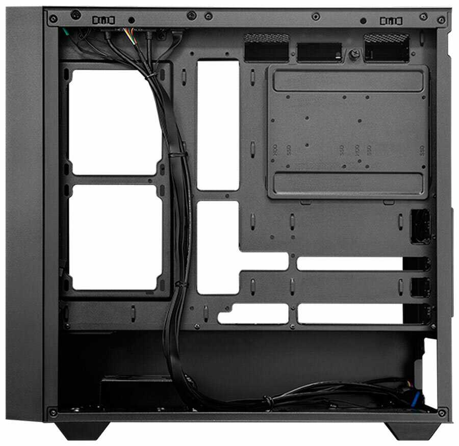 - + Корпус довольно просторный внутри, что позволяет установить разные компоненты без тесноты. Крепкая конструкция на вид, не скрипит и держит форму хорошо.