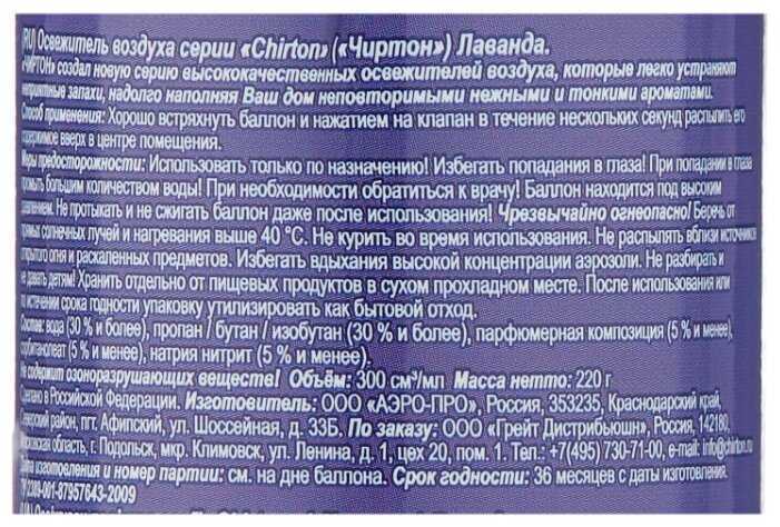 Характеристи Chirton аэрозоль Лаванда, 300 мл