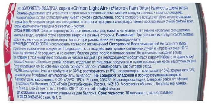 48 отзывов пользователей o Chirton аэрозоль Light Air Нежность цветка лотоса, 300 мл