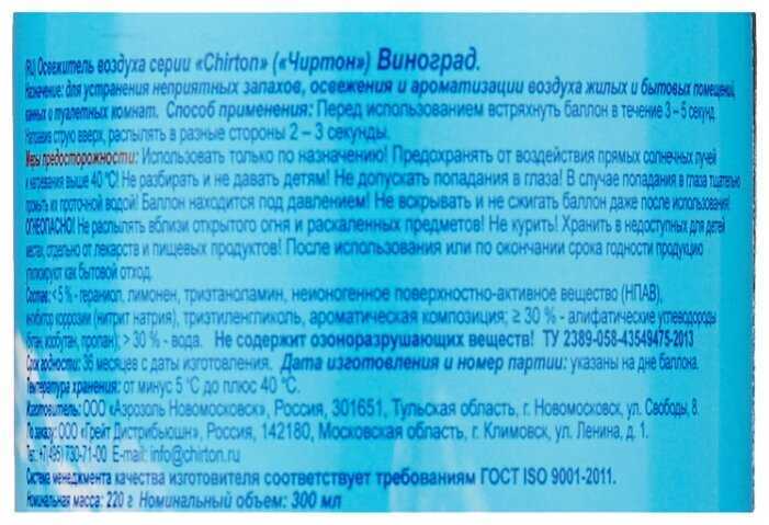 22 отзывов пользователей o Chirton аэрозоль Виноград, 300 мл