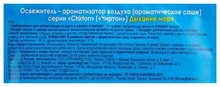 41 отзывов пользователей o Chirton саше Дыхание моря, 15 гр