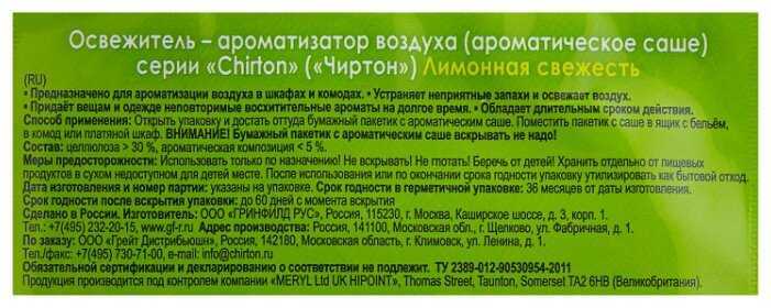 34 отзывов пользователей o Chirton саше Лимонная свежесть, 15 гр