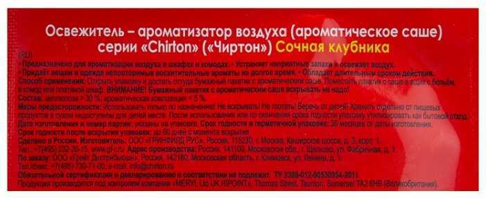 Характеристи Chirton саше Сочная клубника, 15 гр