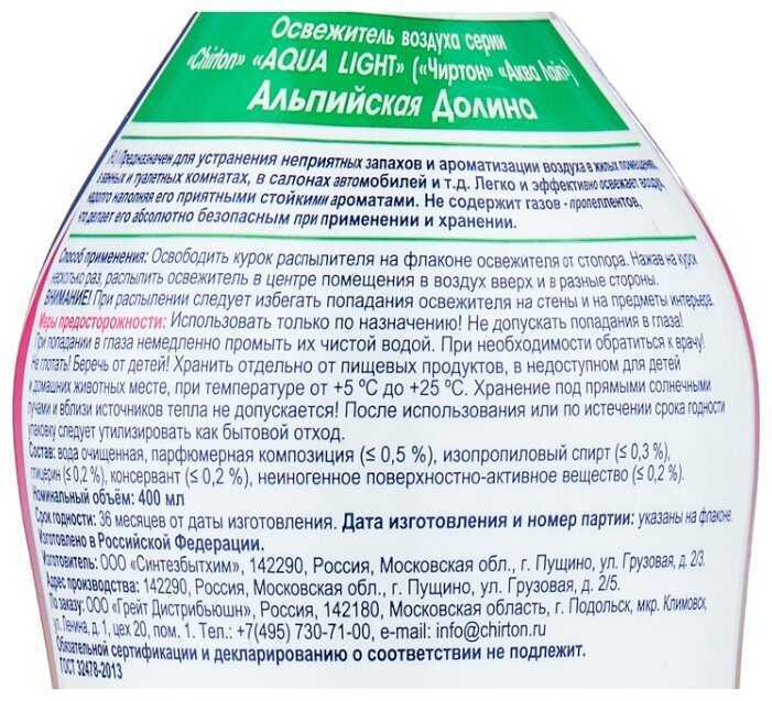 Лучшие цены сегодня на Chirton спрей Aqua Light Альпийская долина, 400 мл