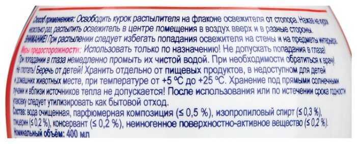 - Подходит для освежения воздуха в помещении или машине, маскирует даже стойкие odors.