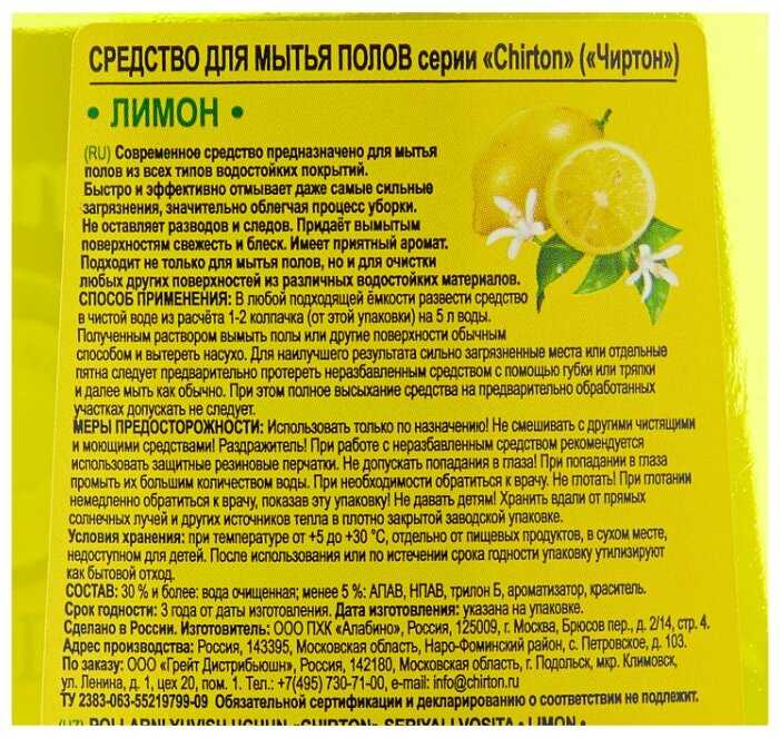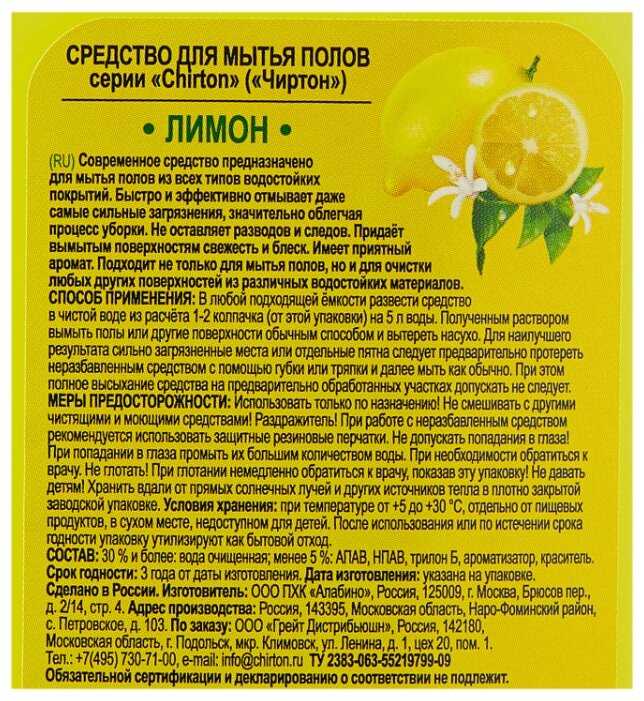 48 отзывов пользователей o Chirton Средство для мытья полов Лимон