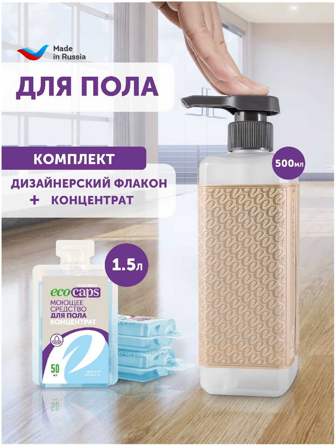 6.1/10 балловEcoCaps Средство для мытья пола (стен), набор для уборки дома моющая жидкость в капсулах 3 шт и флакон 500мл