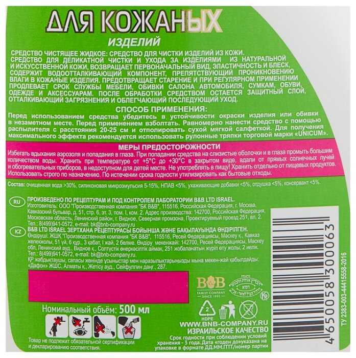 Unicum средство для чистки изделий из кожи