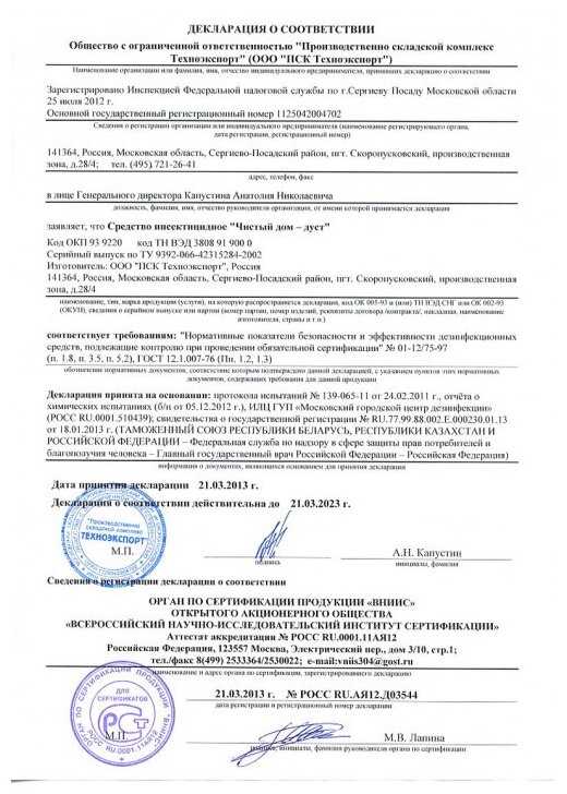 Дополнительная информация : | Меры предосторожности: обработку помещений проводят в перчатках при открытых форточках (окнах) в отсутствии людей и домашних животных. На время обработки удалить пищевые продукты и посуду. Избегать попадания в глаза и на кожу. При случайном попадании помыть водой. После окончания обработки вымыть руки и лицо с мылом. Уборку проводить через 24 часа после обработки мыльно-содовым раствором в резиновых перчатках. Хранить в сухом, прохладном, затемненном и хорошо проветриваемом помещении, в местах, недоступных для детей и животных, отдельно от пищевых продуктов. Температура хранения от -10°С до 40°С. |
