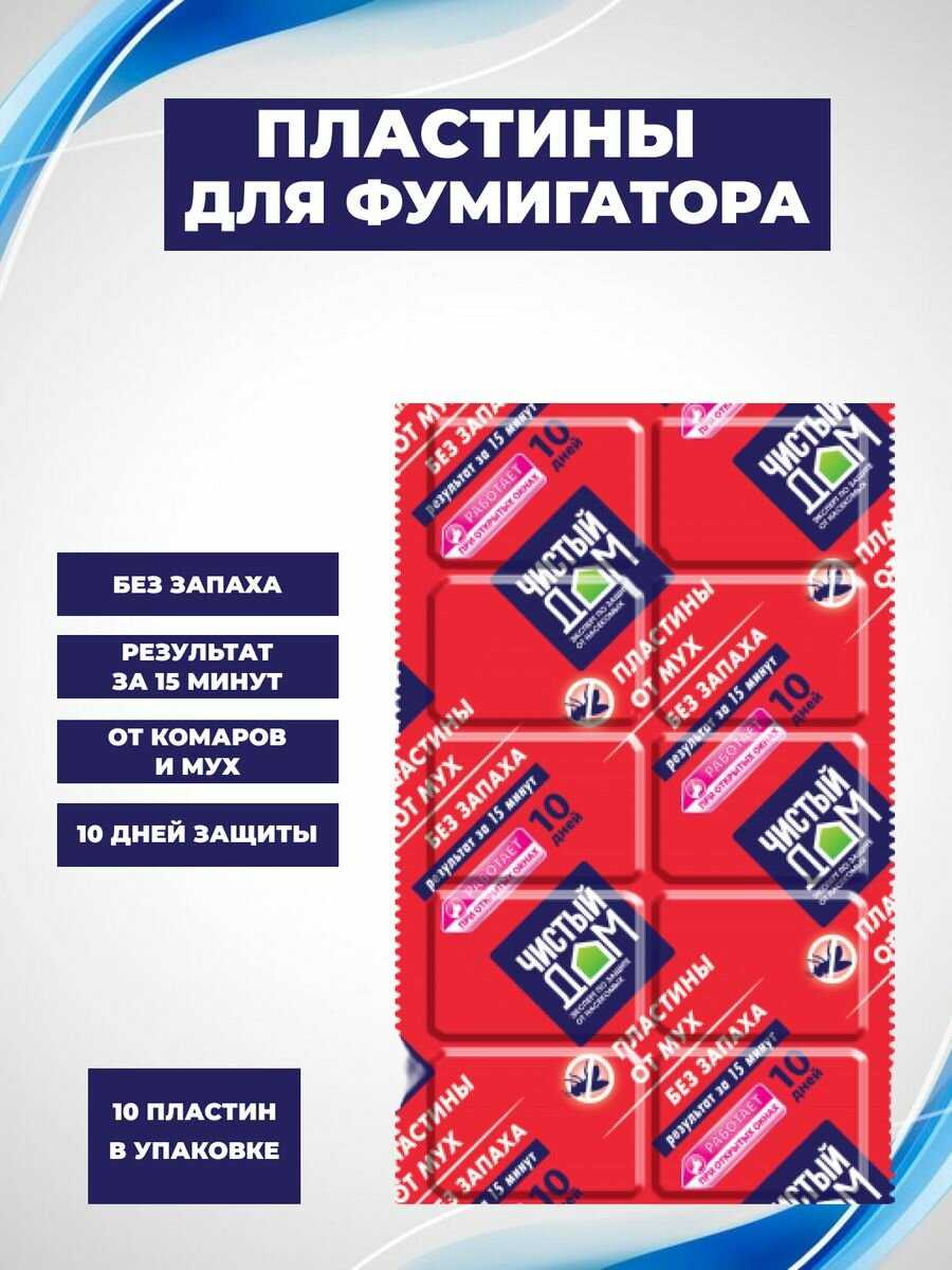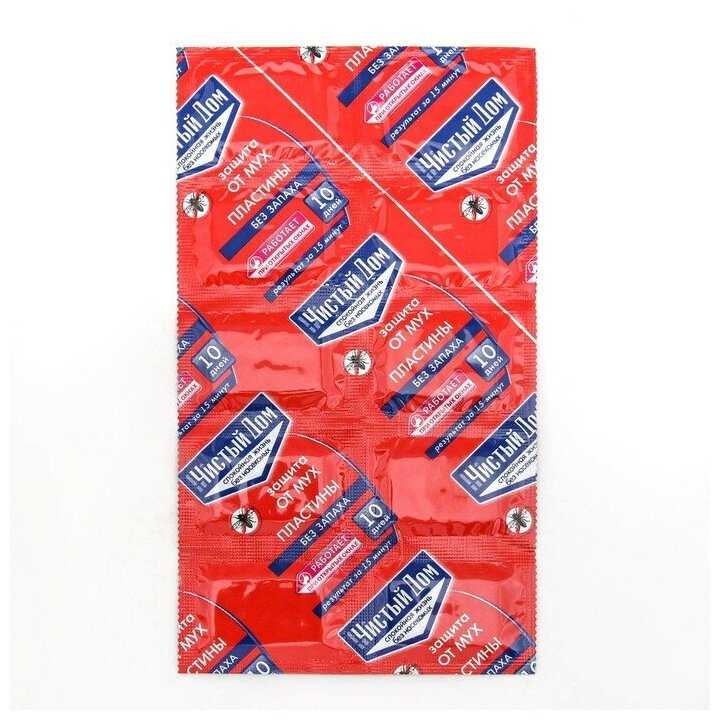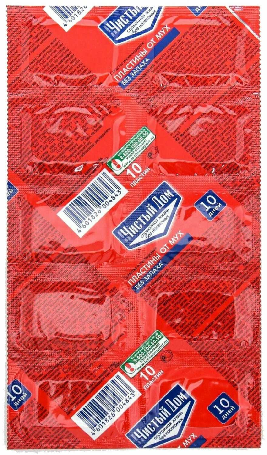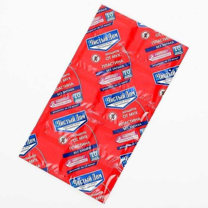 Способ применения : | вскройте упаковку достаньте пластину от мух “Чистый Дом” и вставьте ее в нагревательный прибор, включите нагревательный прибор в электросеть (220 Вт 50 Гц), пластина начинает действовать через 8–10 минут после включения, полное уничтожение мух достигается за 40-60 минут, наибольший эффект достигается при закрытых окнах и форточках |
