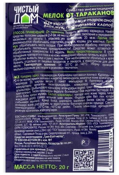 | Дополнительная информация : | Карандаш меловой для уничтожения тараканов |