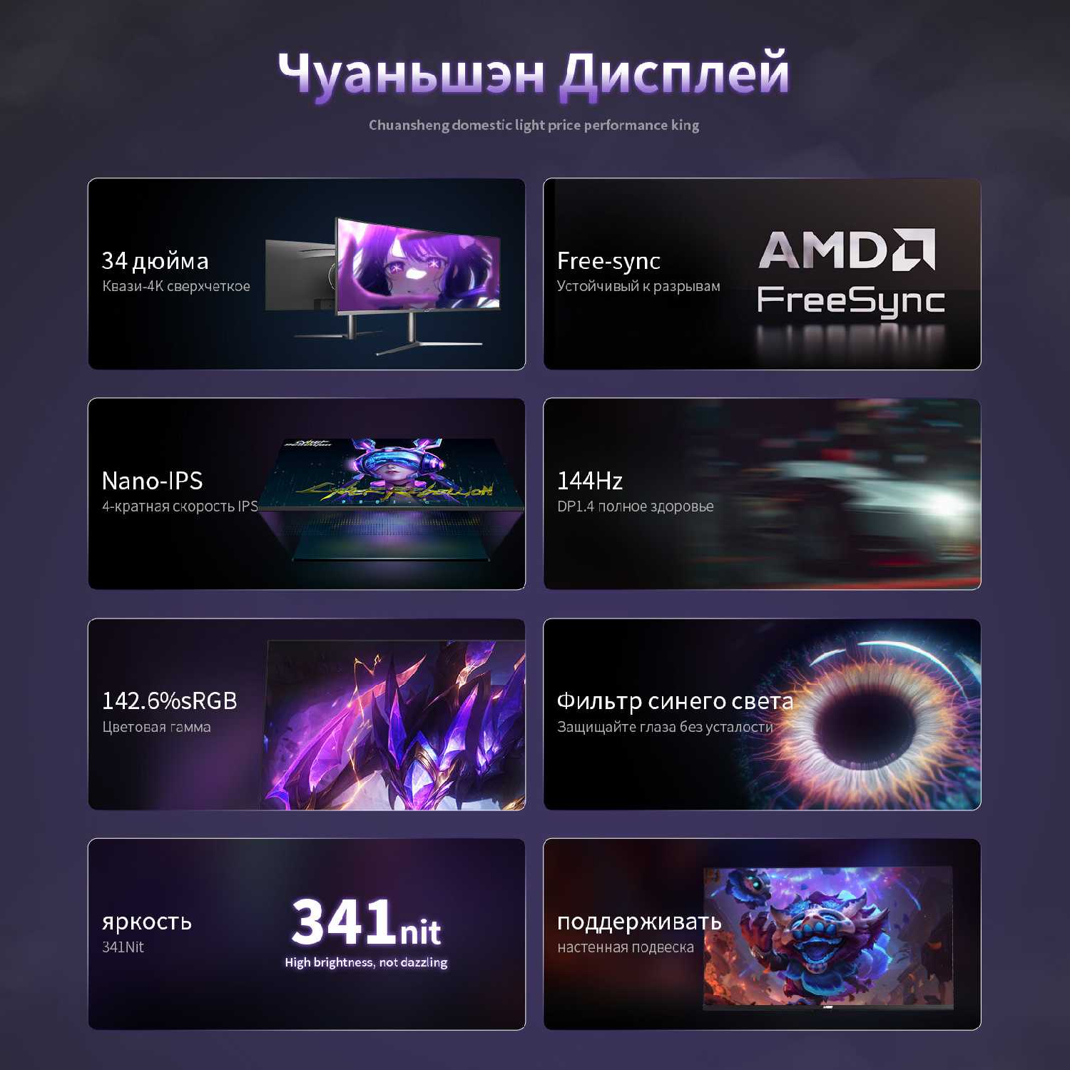 - 120 Гц иногда сбрасывает разрешение до 3440x1440 или ниже, требует перезагрузки; эффект желе в динамичных сценах.
