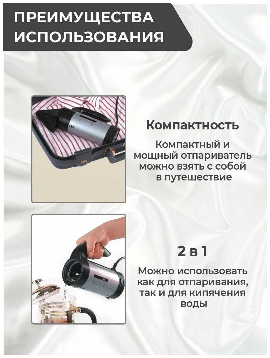 Прочитала отзывы и решила заказать,больше похоже что я нагрела чайник и вожу им по одежде,тяжелый,отпарив одну майку сильно затекла рука,очень слабый,чтоб отпарить одну майку,потребовалось минут 15